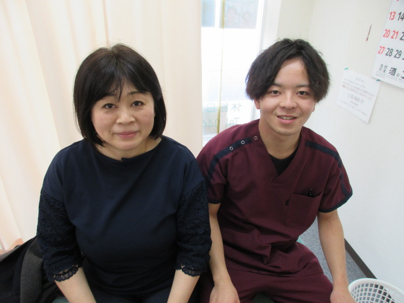 お悩みの症状:頸椎ヘルニア 《どんなお悩みですか?》 右の肩が痛かったです。肩を後ろに回したり家事をしているときも激痛で、鋭い痺れのような神経痛や重い感じの鈍痛もありました。とにかく何をしていても気になる感じでストレスでしたね。 《どんな症状でしたか?》 半年くらい右の肩を動かすと痛みが出ていました。ここに来る以前も整形外科さんの方に通院していましたが、あまり改善がなくズルズルと今まで来ていたような感じです。肩を後ろに回したりあげたりするとズキズキと神経痛が走っていました。 《施術していかがでしたか?》 かなり改善しました。今までは動かすと痛みがありストレスだったのが今では日常生活はストレスなく送れています。何をしていても痛みがあったので自分でも触っていたりと四六時中気になっていたのが改善されて本当にストレスが無くなりました。 《同じ悩みをお持ちの方へ一言かけるとしたら?》 しっかりお話を聞きながらやっていただけて、痛みもありませんでした。私は本当にストレスが無くなったので悩まれている方は是非。 (蔦本さん 40代)