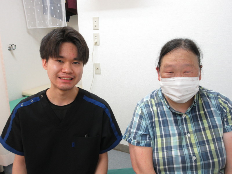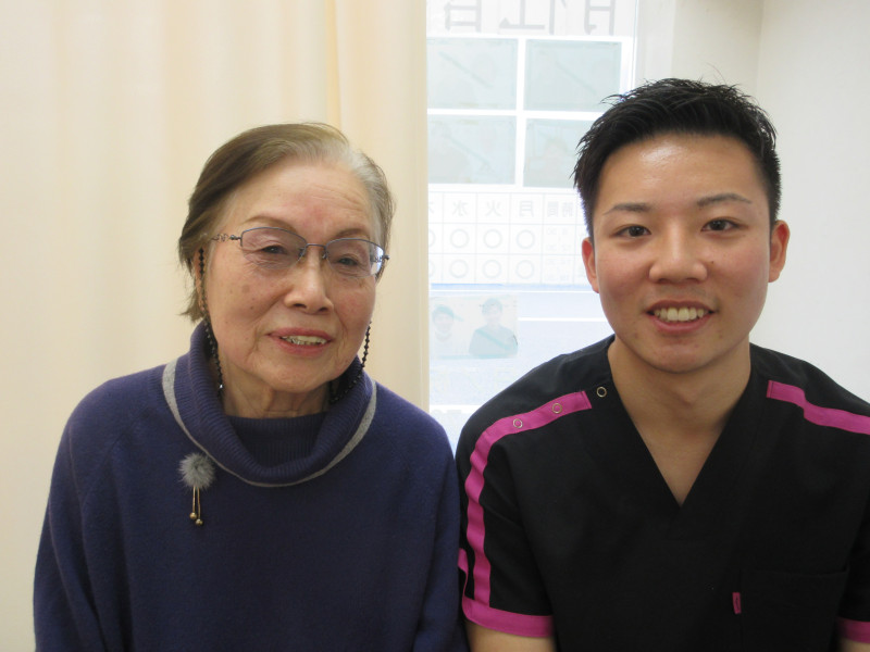 どこも痛いところはないんです。私の希望に沿ってやっていただけました。本当に気持ちいいんです。終わった後はいつも気持ちも楽になるような感じです。今では家の中では杖は使わずに歩けています。外に出かけるときもこの前は杖を忘れるくらいによくなりました。本当に感謝しています。